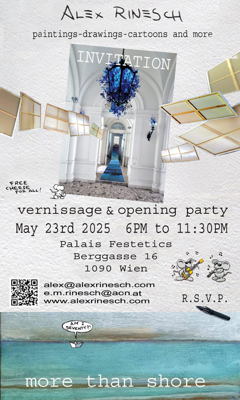 Künstler. geb. 05.03.1955 Arbeitet und lebt in Wien und Italien. Maler, Cartoons, Digital Photoart, Skulpturen, Objekte, Installationen Zeige alle Artikel von Alex Rinesch →